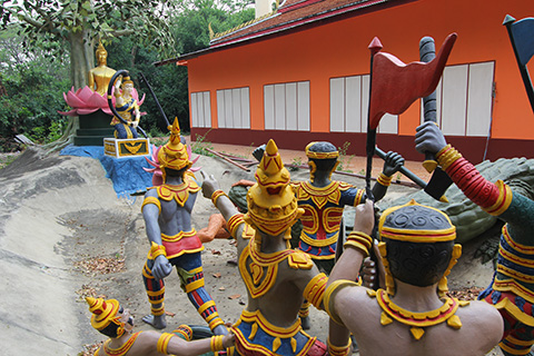 国道沿いの門にはワット・ムアン(ワット・ムアンのムアンは街の意味かと思っていたら紫だったようだ。カタカナでは同じなんだけどね)と書かれている。