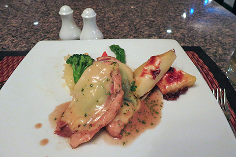 チキンコードンブルー、ジャックダニエル3杯とで1,199THB(10%のサービス料込み)