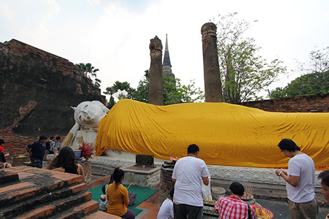 アユッタヤーはタイを代表する観光地だしバンコクからも近いから日本人がいても全く不思議じゃないのだが、声のしたほうを振りむくとHISの小旗を持ったガイドに率いられた日本人グループだった。