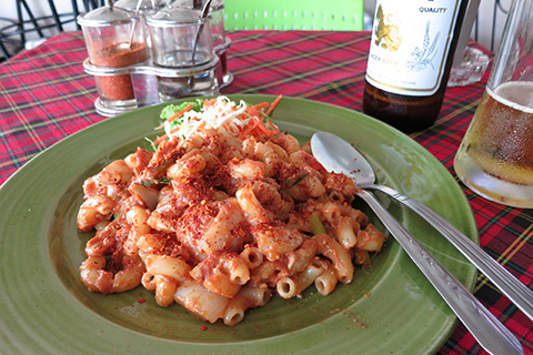 日本でマカロニを食べるのはサラダ以外にあまりないだろうけどタイの洋食としては一般的だ。