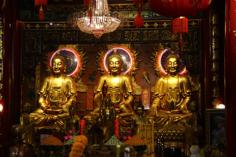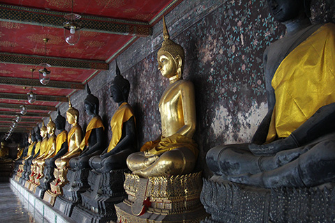 ここは回廊に並ぶキンキラ仏像が見事、かと思ったら黒いのも混ざっていた。