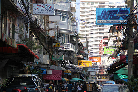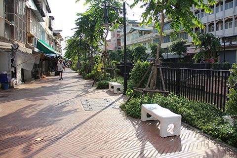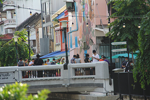 橋の上にはそこそこの人がいたのであの記事を見てやってきた人たちかと思ったら半分は近所の買い物客で、橋からつながるソイがタラートになっていた。