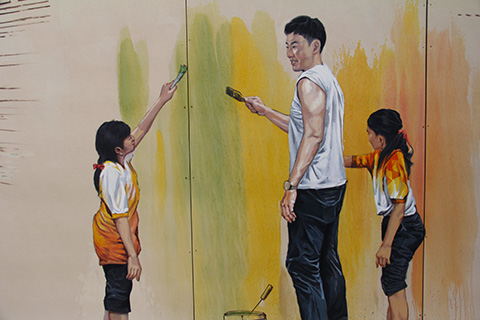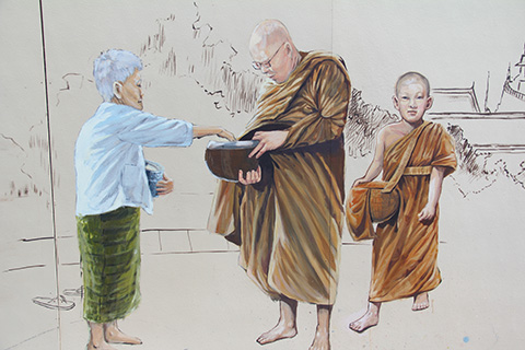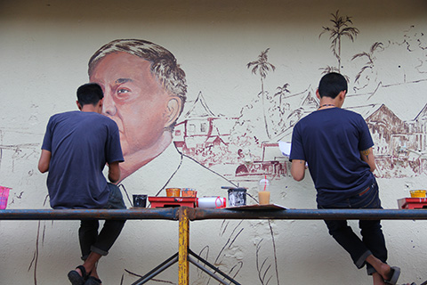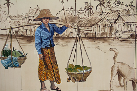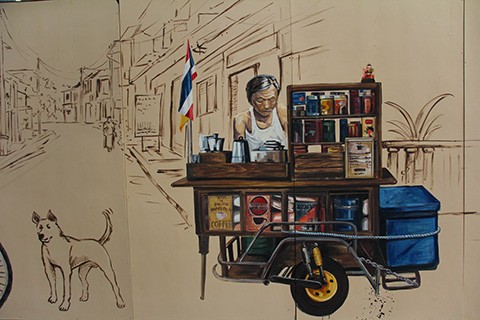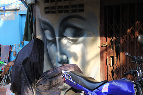 サパーン・ハンのたもとに一つ目のウォールペイントがあった。