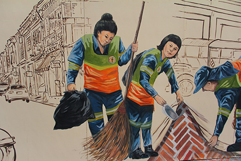 この辺りにはインド系の男女が描かれていたがインド系が入って来るあたり彼らの多いこのエリアを反映している。