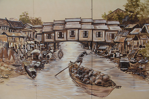 上流の橋を対岸に渡るとまた違う画風。