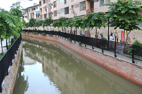 運河の両側には遊歩道が綺麗に整備されている。