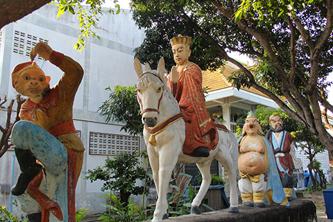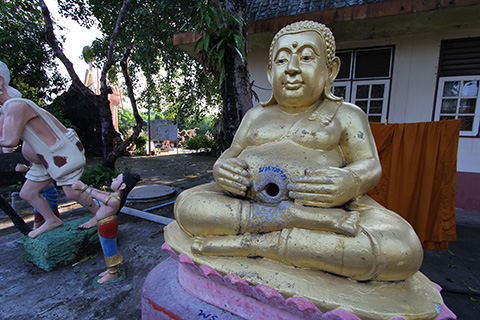 門の前からすでにいくつかの像が並んでいてその像ごとに置かれている賽銭箱にタイ人客は片っ端から賽銭を入れて行っている。