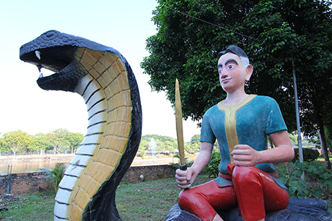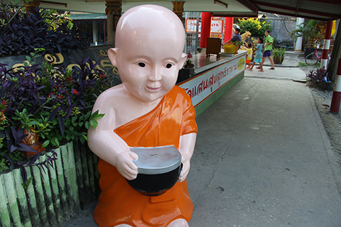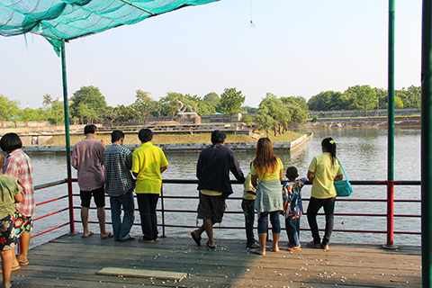 人でにぎわった方に進んで行くと池が現れ、タイ人はいつものように魚の餌を買って投げ与え熱心にタンブン(喜捨)を行っていた。