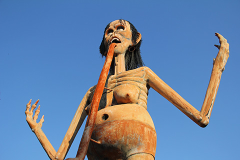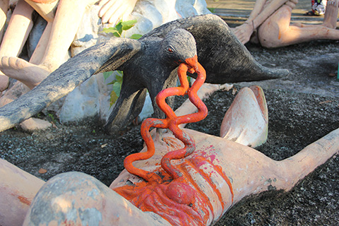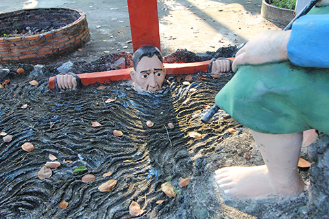 地獄によっては体に斑点ができていたり一部が白骨化していたりすることがあるものだが、ここのは二体とも下半身を覆われ、病気にもなっていない模様でちょっとマイルド。