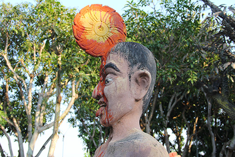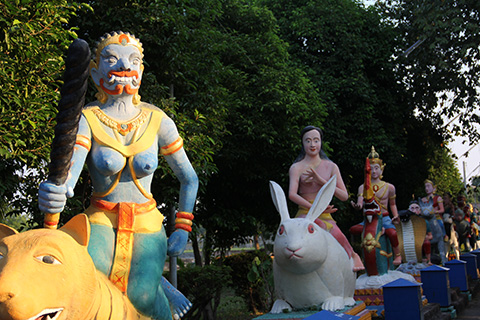 道路の左側に牛や虎、サルにコブラにまたがった人の像がずら〜〜〜っと並んでいる。