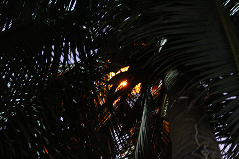 日が沈み夕闇が迫ってくると椰子の木に明かりが灯され始めた。