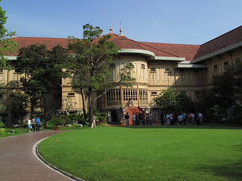 チュラロンコン王の時代に使われていたチーク材で出来た宮殿で、その雰囲気が金ぴかのお寺と対照的でしっとりと落ち着いている。