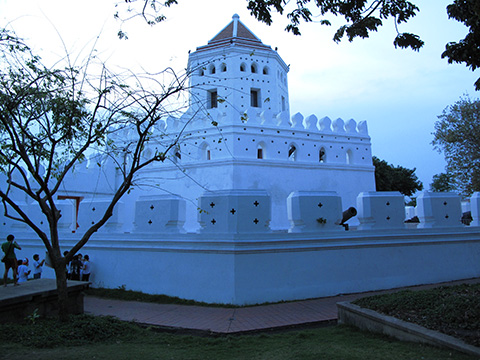上陸してすぐのところにあるプラスメン砦脇の小さな公園ではタイ人、ファランがブレイクダンスを踊ったり楽器を演奏したり、シートを広げて車座になってものを食べていたりと思い思いに日没までの時間をゆったりと過ごしている。