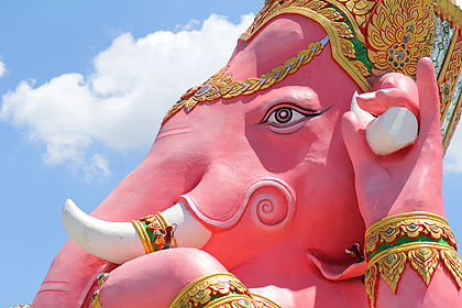 仏教グッズとかはあまり関係なさそうな土産物屋でにぎあっている参道を進んでいくと、巨大なピンクのガネーシャの後ろ姿が見えてきた。
