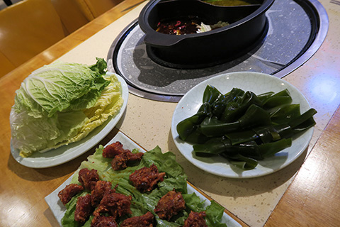 辛味噌漬け牛肉、白菜、昆布、豚バラ肉、キクラゲとビールで152RMB。
