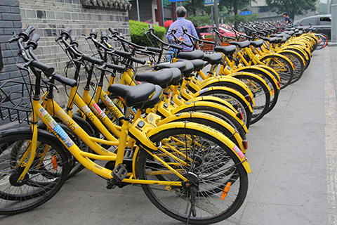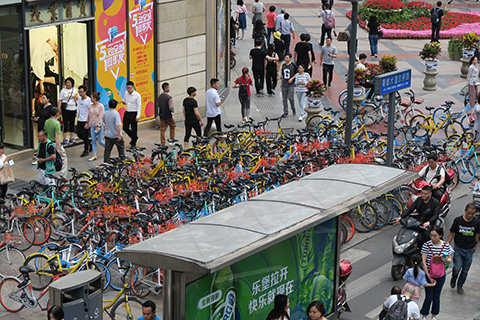 成都ではシェア型自転車がよく出回っていた。