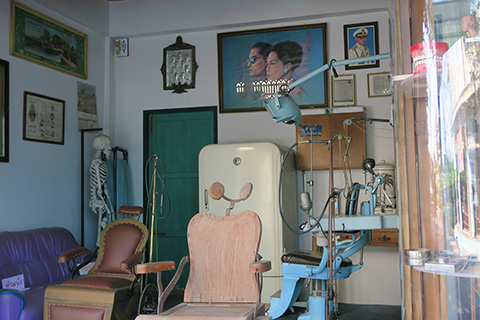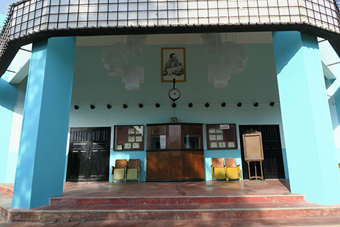 正面の通りは商店街らしく金物屋や薬屋、床屋に縫製店、時計屋などが並んでおり、正面にはパステルブルーの映画館が建っていた。