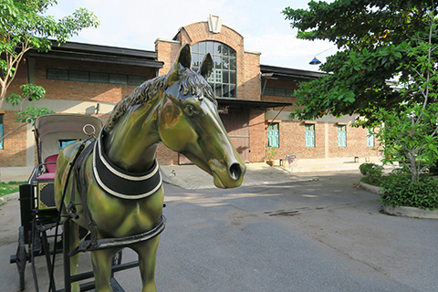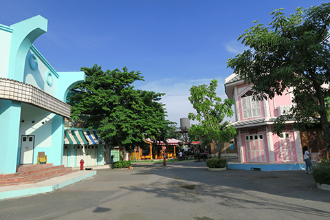 ここは昔のタイの街並みを再現した場所で入場は無料、レストランが一軒だけ営業しており駐車場には7,8台の車が停まっていた。