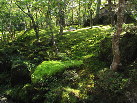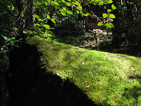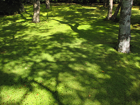 ここで有名な紅葉にはまだ早いが人も少ないしなによりも庭園の苔の緑が美しい。