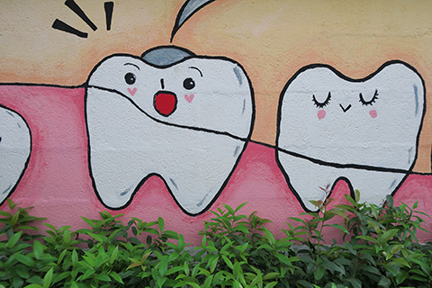 今までに10箇所くらいウォールペインティングを見て来たが歯を題材にしているのは初めて見た。