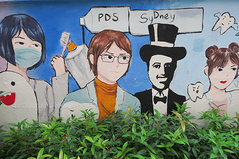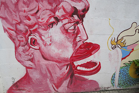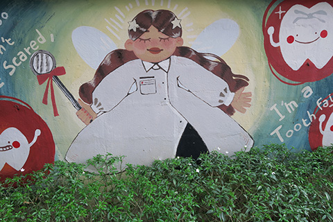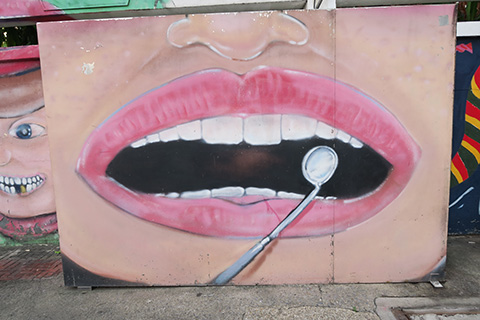 今までに10箇所くらいウォールペインティングを見て来たが歯を題材にしているのは初めて見た。