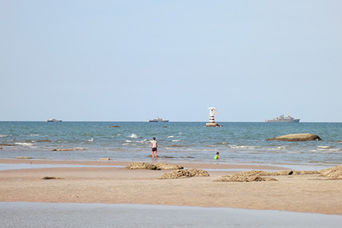 | 軍艦が悠々と進んでいく。晩飯でも釣ってるかな。 |