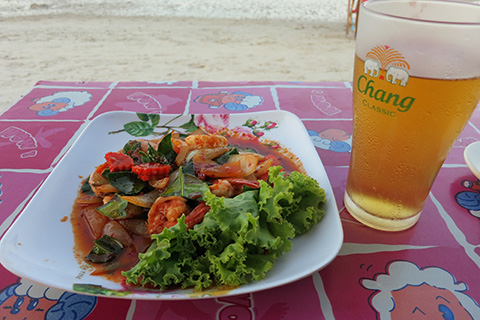 | ビーチにてグンナムプリックパオ。200THBと観光地料金。 |