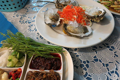 | ヒンサイシーフードという店で食べたタイでは珍しく味の濃い生牡蠣 |