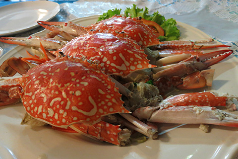 | 海では定番のプーマーヌン(蒸し渡り蟹) |