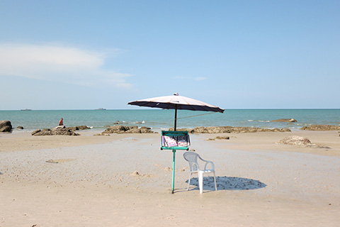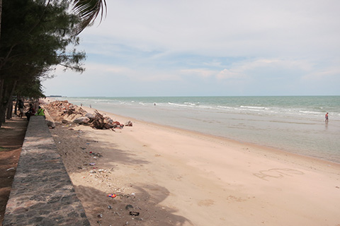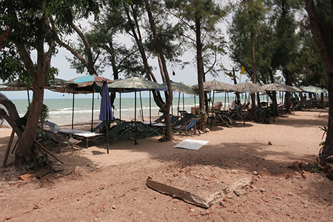 カオタキアップ方面に向かってみると、それまでちらほらと点在していたビーチチェアーはプーケットなどと同様軍政によって一掃された模様。