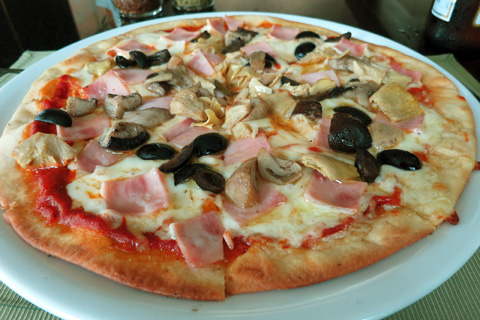 | チャアムのホテルでのピザ。これはサクサクしていて美味しかった。 |