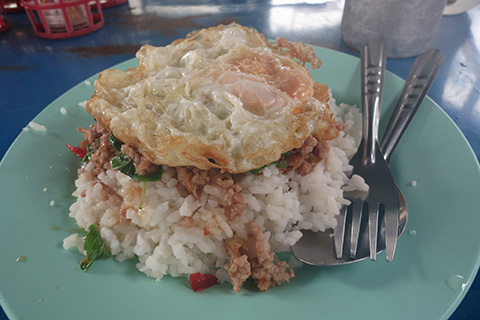 | タイのお手軽料理の定番ガパオムーサップ。やっぱり美味い。 |