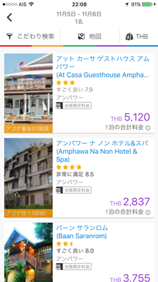 かといって人気のないダムヌンに宿を取っても不便だしと思いつつ「そうだ、(連休の時は渋滞が激しくて行く気にならない)フアヒンはどうだろうか」と調べてみると、さすがに歴史のあるリゾート地だけあって宿はピンからキリまで豊富に用意されていた。