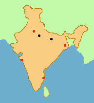 赤い点は上からデリー、カルカッタ、ムンバイ、マドラス