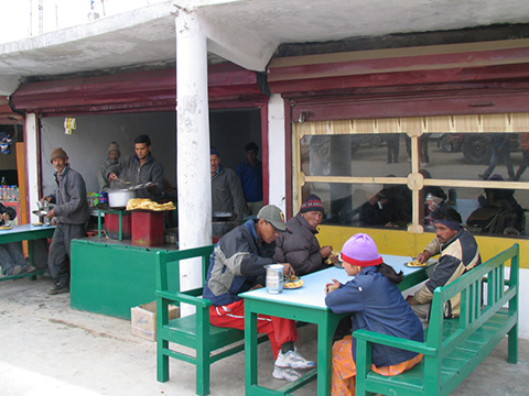 その峠を降りたところにあるNimmuという街でサモサ+チャイの昼飯。