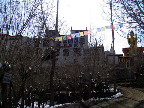 Likirはインダス川を挟んでAlciと逆の側の荒地の中に雪山をバックに建っていた。