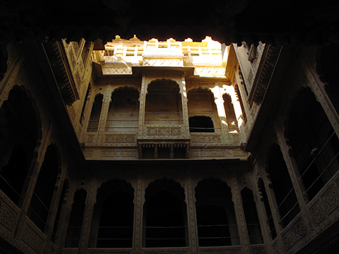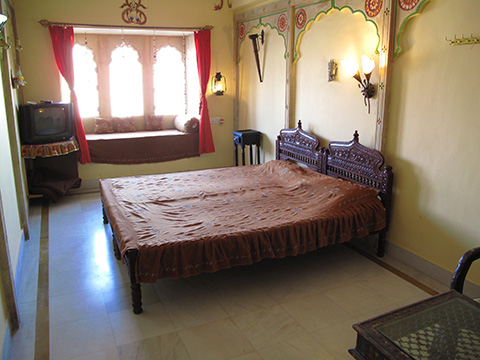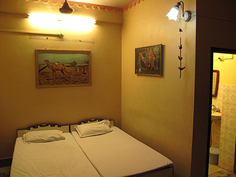| 12/28-29 | ジャイサルメール | Hotel Paradise | 1,500INR/day | ☆☆☆☆ | ![]() Fort内のHaveliを利用したホテルで古さは感じるが明るい中庭も部屋も雰囲気はよい。 ファン、TV、ホットシャワー付きのダブルベッドルーム。 コンセントもいくつかある。 夜間は冷え込んだので毛布に加えて薄手の掛け布団が役に立った。 屋上から水平線やFort内が眺められ、粽に入っている黄身のようなオレンジ色の夕日がきれいだった。 |