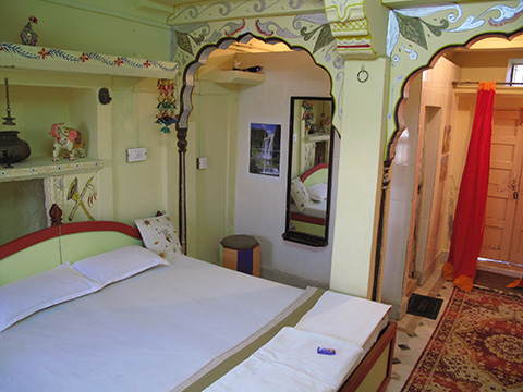 | 12/26-27 | ジョードプル | Hotel Haveli | 1,600INR/day | ☆☆☆★ | ![]() A/C付きダブルベッドルーム。 出窓からメヘラーンガル砦が見える。 雰囲気はいいが迷路のように増築を重ねた建物はちょっとぼろい。 夜になると寒かったので2枚備え付けられていた薄手の毛布が役に立った。 2日目にベッドメイクや掃除は入らなかった。 屋上レストランからのメヘラーンガル砦の眺めとベジターリはGood。 |