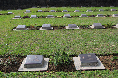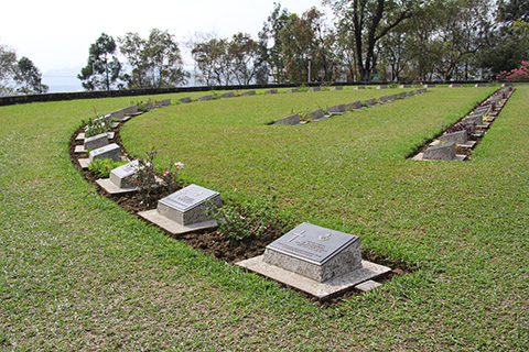 当時は日本軍とイギリス軍との激戦地になったであろう緩やかな丘にはカンチャナブリで見たような墓碑がずらーーっと並んでいた。