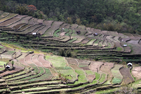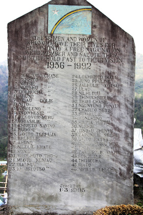 見所といえば丘の上の教会と谷間の棚田、それにインドとの独立戦争で亡くなった方の名前の刻まれた慰霊碑くらい。