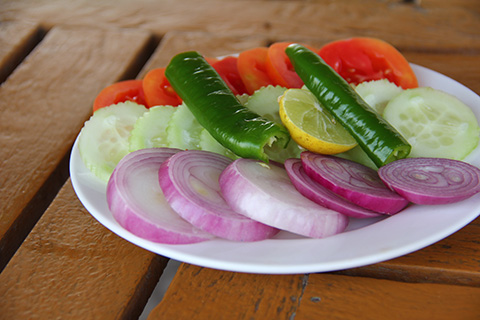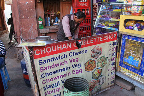屋台の前に英語のメニューが掲げられていたのでその中からマサラチーズオムレツ(45INR)とチャイ(20INR)を注文。