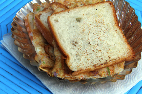 隣には中国人らしき先客がおりできたばかりのオムレツサンドを頬張っていた。