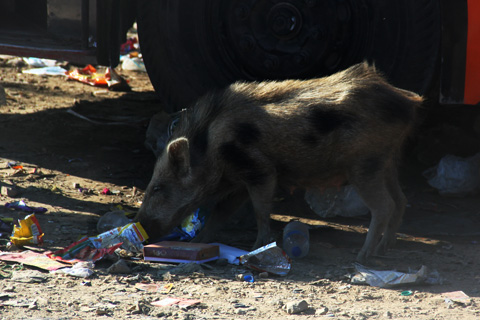 それにしてもイノシシのいるバスステーションは初めて経験した。