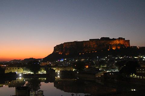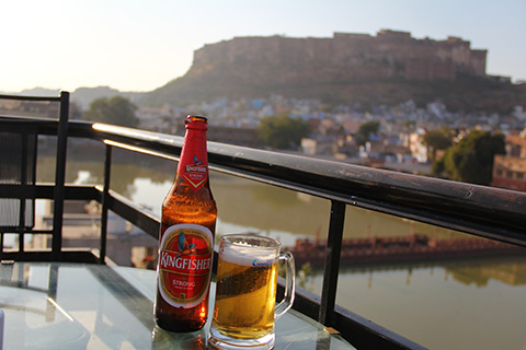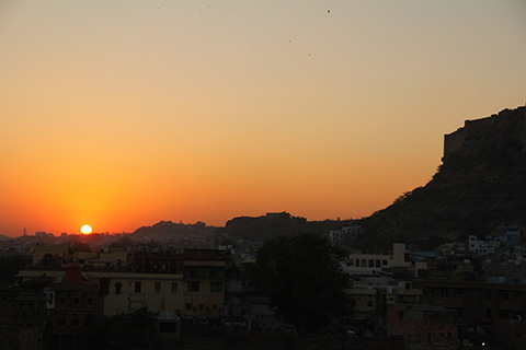 部屋は狭く窓からの眺めも良くないけど屋上レストランからのジョードプルのメヘラーンガル砦の眺めが素晴らしい。