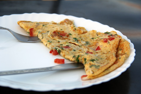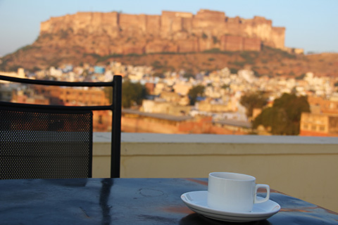 メヘランガルフォートを眺めながら屋上レストランでオムレツとチャイの朝食。