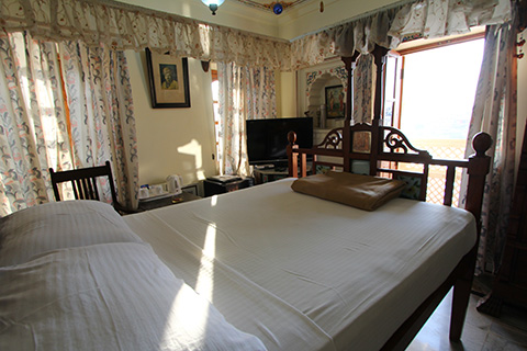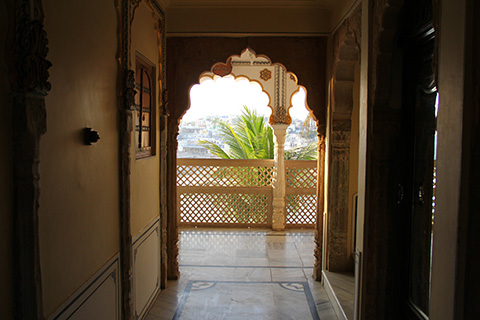 今日のホテルはAgodaで予約した湖沿いのプシュカルパレス。古い宮殿を改装したものだそうだ。
