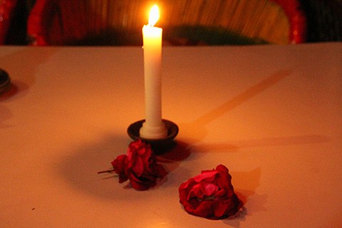 インド人や白人がそこの石段で瞑想している。