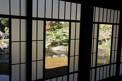 大方丈と言われる建物を見物客に開放していたので上がってみると、やはり京都のような派手な襖絵などはなく、違い棚、畳、障子とサビの世界。