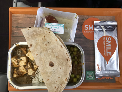 機内食はいつもの通りヒンドゥーベジタリアンを予約。