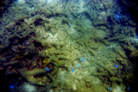 季節的なものなのかここもやはり透明度はさほど高くなくサンゴは豊富だったものの小さめの魚がちらほら見えるくらい。